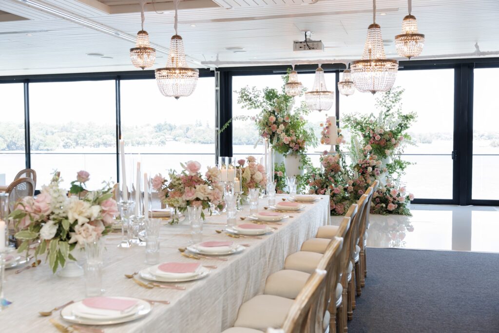 Bathed in natural light and framed by expansive views of Iron Cove, the Main Ballroom is Aqua Luna’s signature space. With a refined neutral palette, crystal chandeliers, and seamless indoor-outdoor flow, this setting is designed to host moments of significance with quiet grandeur.